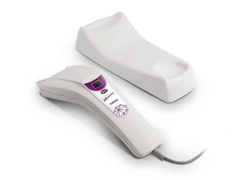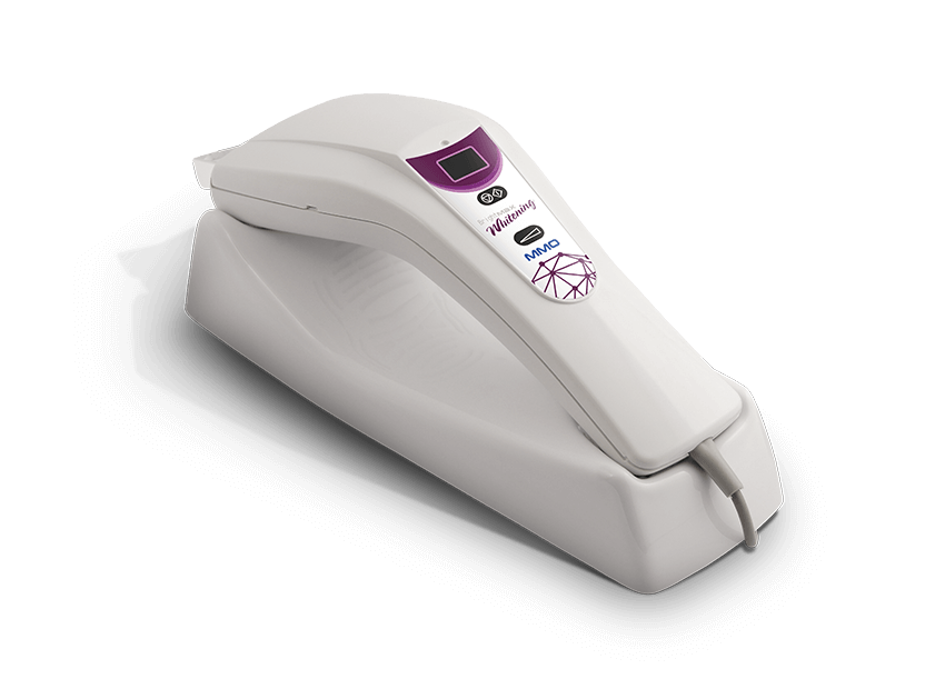 Bright Max Whitening contém quatro super LEDS violeta de alta potência ótica numa única peça de mão. A luz é projetada por ponta acrílica exclusiva MMO que permite o clareamento simultâneo de ambas as arcadas dentárias. O Bright Max Whitening é produzido com equipamentos certificados e desenvolvido com inovador sistema de ponteiras que canalizam o foco da luz violeta emitida pelos 4 SUPER LEDS VIOLETA.
