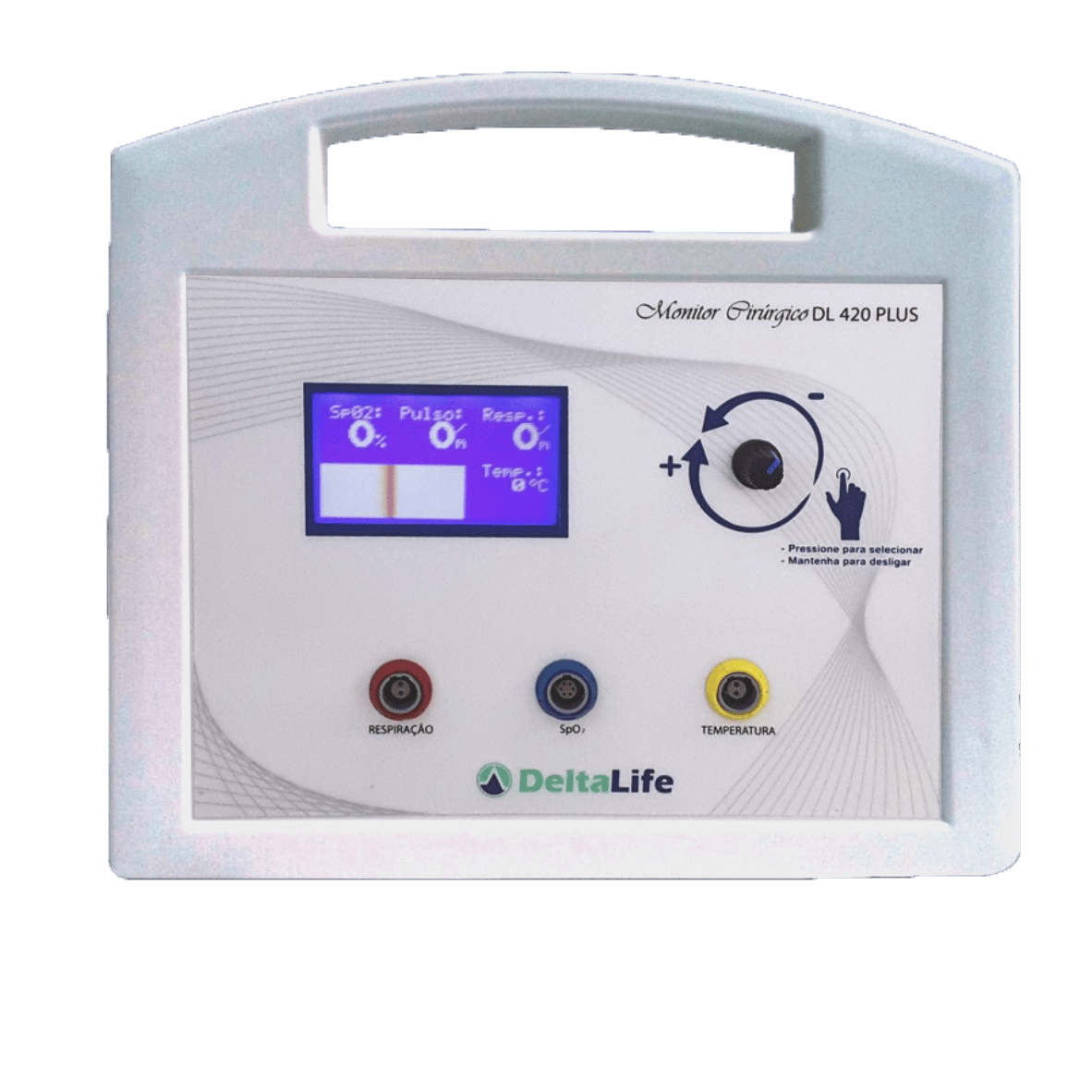O Monitor DL 420 plus monitora os sinais vitais do paciente, possuindo 5 parâmetros integrados. Sendo exclusivo no mercado com o parâmetro respiração, que é detectado pela inspiração e expiração do paciente, o DL 420 possui alarmes sonoros e visuais configuráveis com máximo e mínimo, um monitor de 4.5 polegadas com display de alta resolução, acompanha todos os cabos.